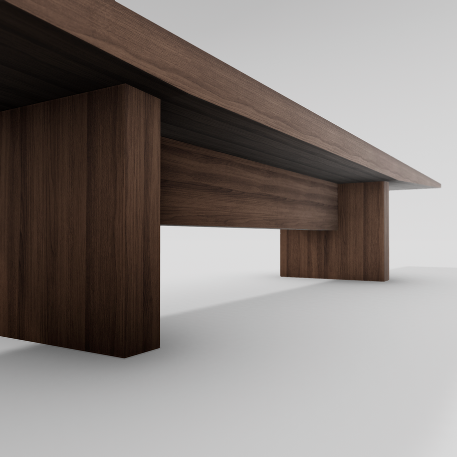 Banca en madera maciza, El asiento vuela en cantilever como si quisiera tomar vuelo.